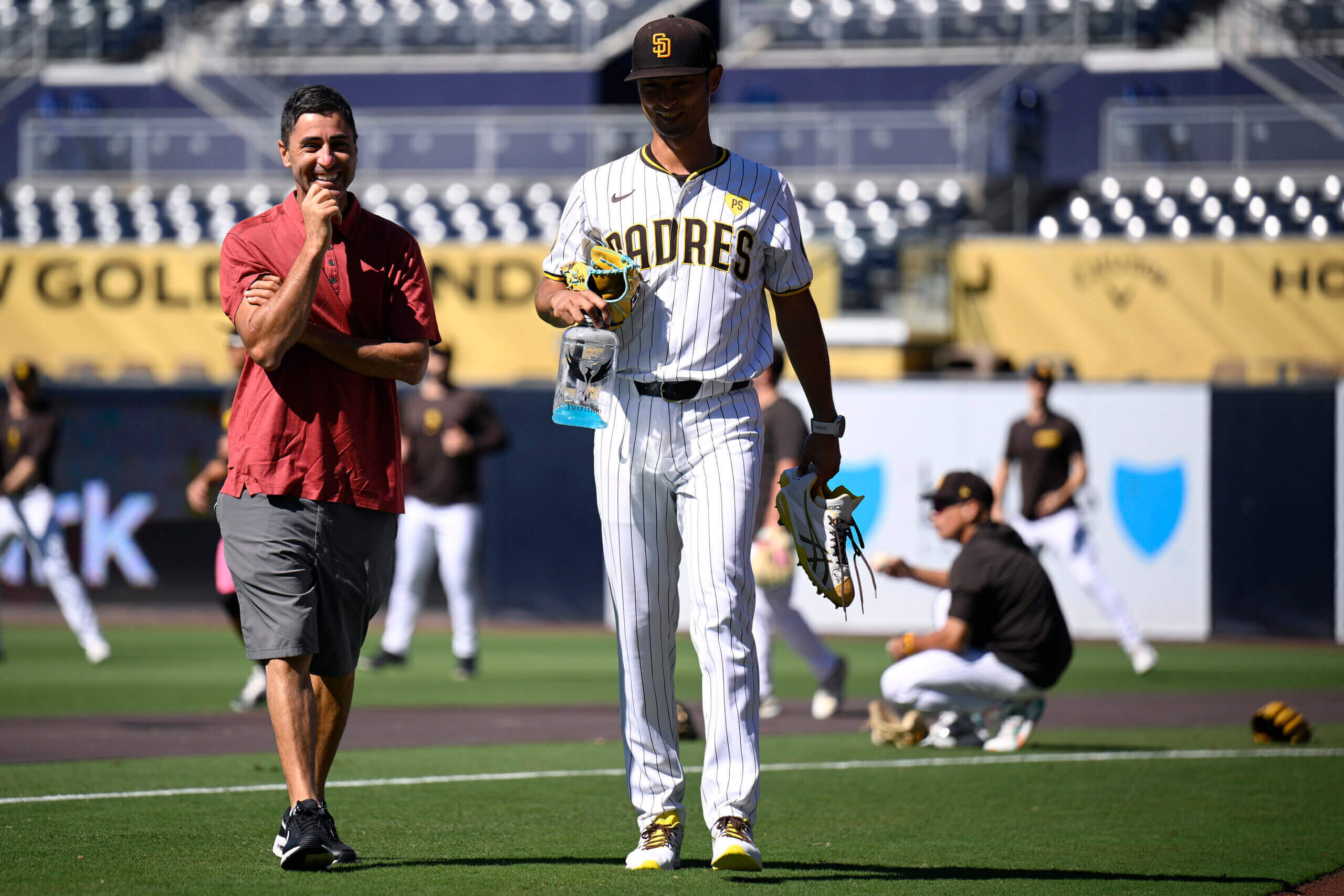 (صورة لـ AJ Preller و Yu Darvish وهما يمشيان معًا يوم الجمعة في Petco Park: Orlando Ramirez / Getty Images)