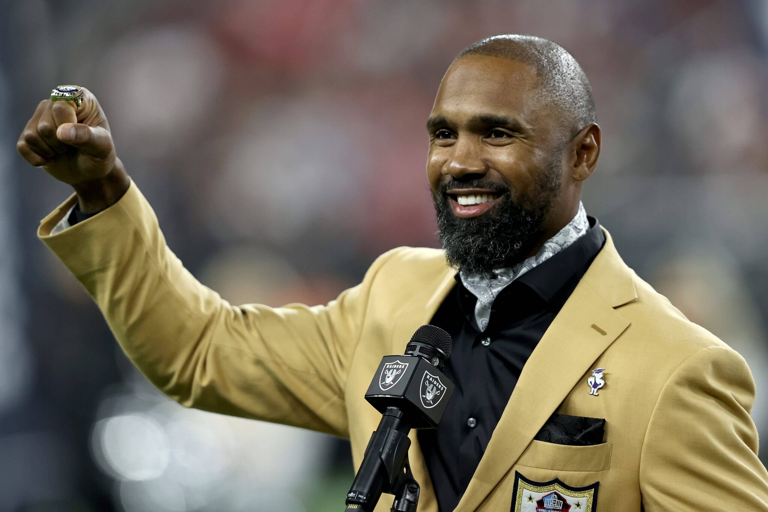 يعرض وودسون خاتمه في قاعة مشاهير كرة القدم للمحترفين قبل مباراة عام 2021 بين فريق كانساس سيتي تشيفز ولاس فيغاس رايدرز في ملعب أليجيانت. (شون إم هافي / غيتي إيماجز)