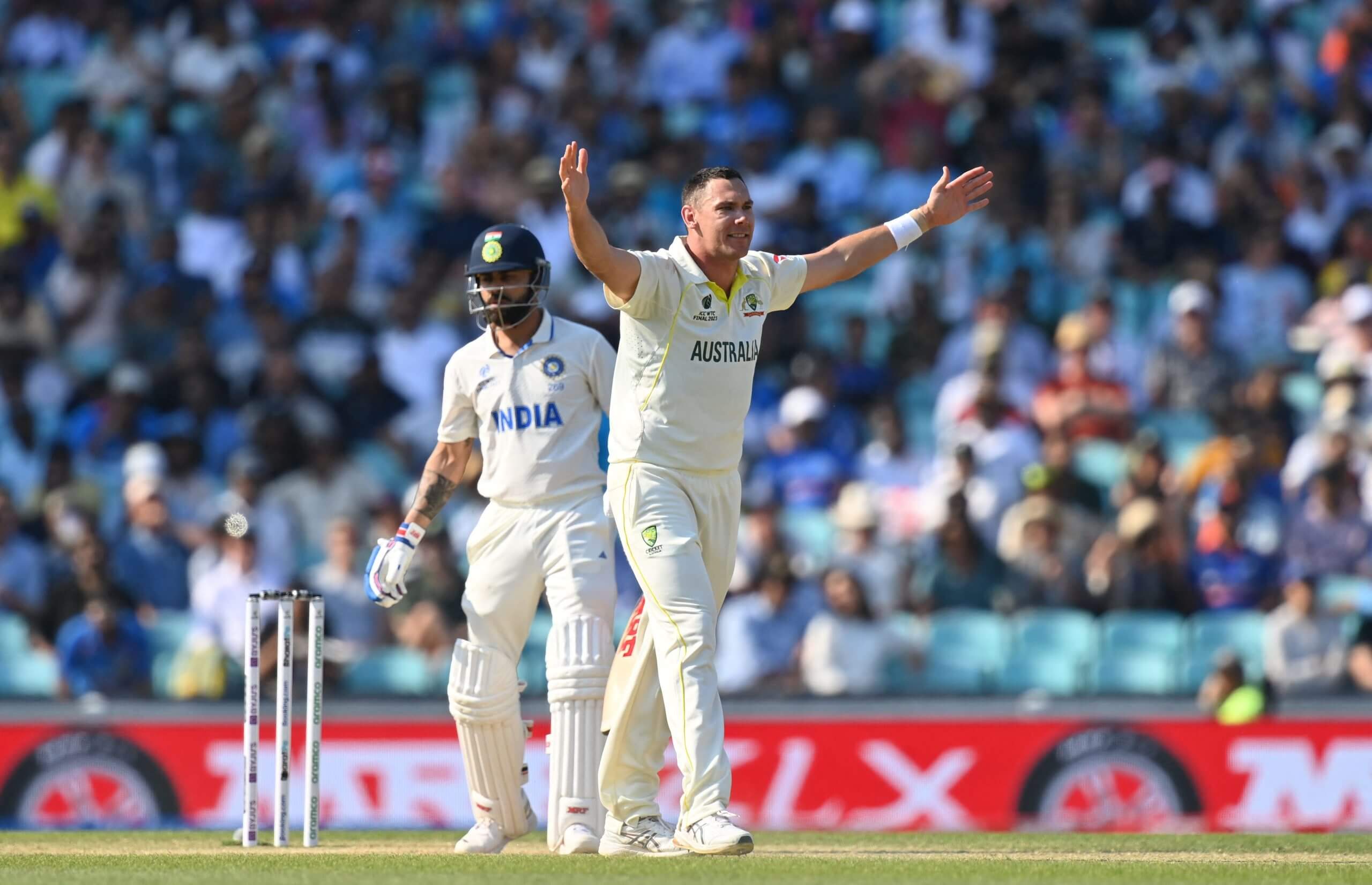 سكوت بولاند يناشد الحصول على نصيب فيرات كوهلي في لوردز في يونيو 2023 (Glyn Kirk/AFP عبر Getty Images)