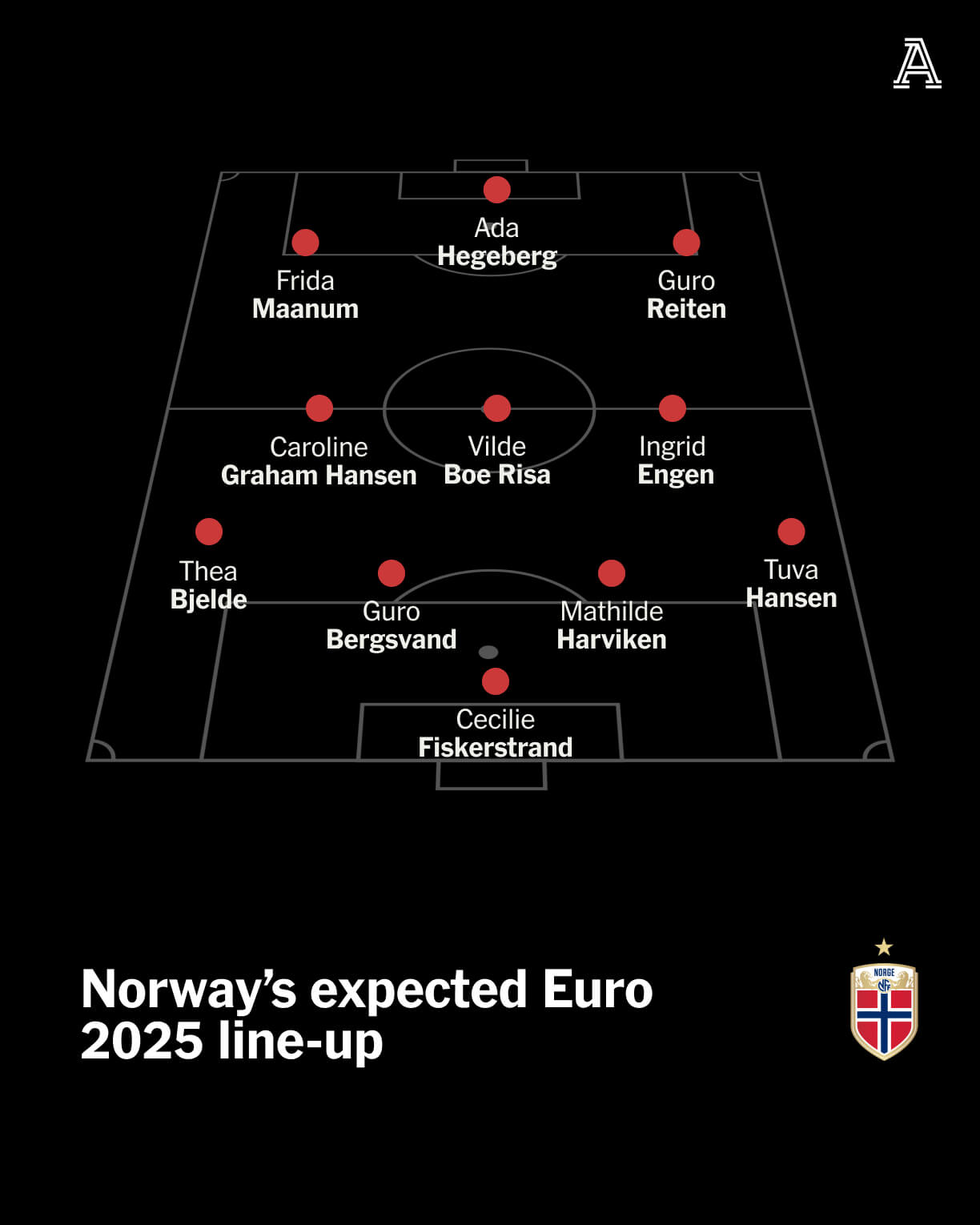 قوة الهجوم النرويج كبيرة. كما ذكر أعلاه ، يعد Graham Hansen و Reiten من بين أفضل ما في العالم ، وهو السابق الذي يقدم قضية قوية كل عام ليعتبر أفضل لاعب في العالم. لا يزال المهاجم المخضرم Ada Hegerberg قوة يجب حسابها ، بينما يمثل Duo Bizet و Terland مانشستر يونايتد الجيل القادم. هذا كل شيء دون ذكر Boe Risa أو Arsenal's Frida Maanum. سجل الأخير 13 هدفًا وقدم أربعة آخرين عبر 41 مباراة في جميع المسابقات هذا الموسم.