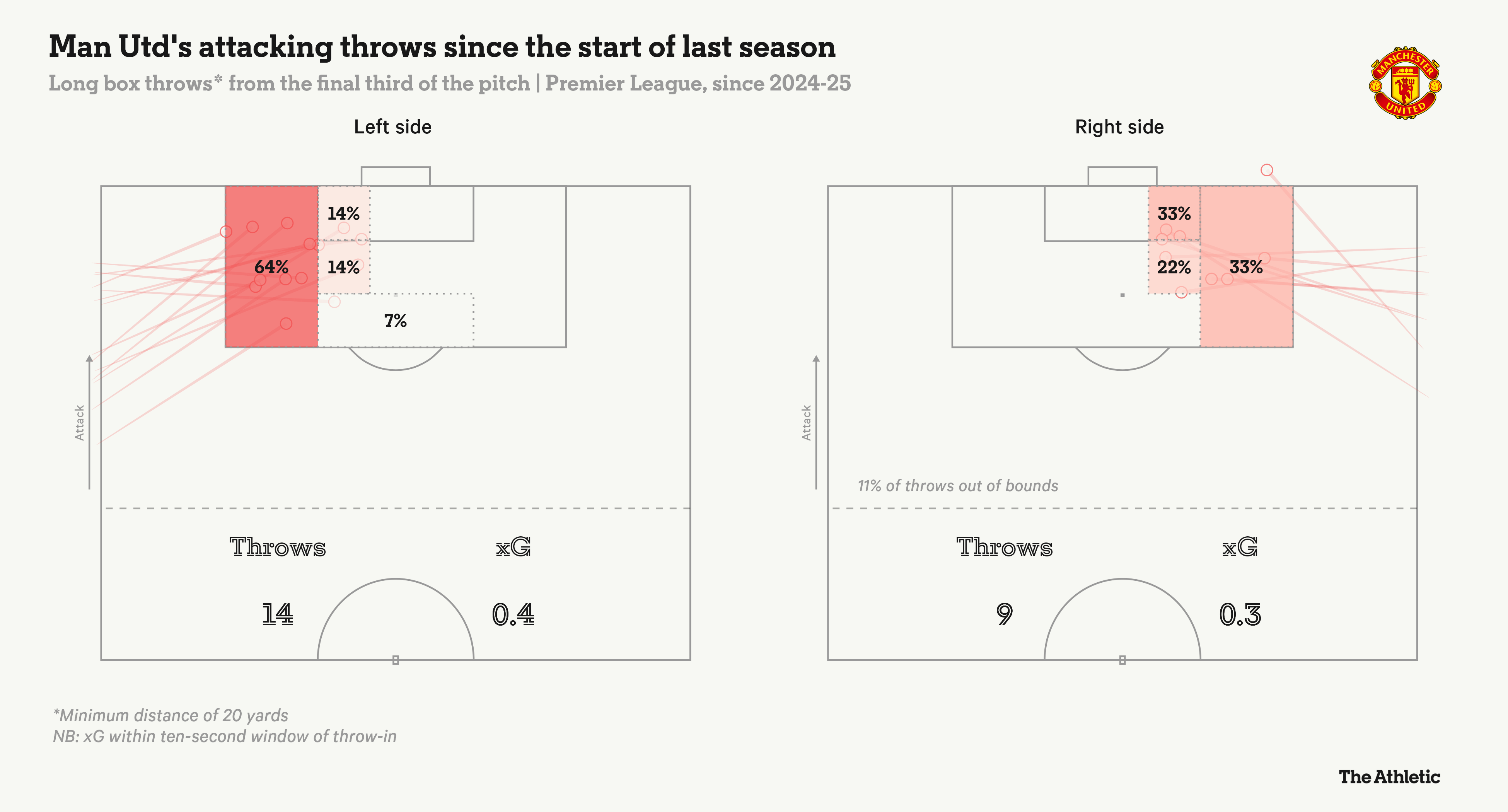 قبل اليوم ، حاول يونايتد فقط 20 رميًا طويلًا منذ بداية الموسم الماضي وفشلت في التسجيل من أي. لقد سجلوا مرة واحدة فقط بعد أي نوع من الفترة الأخيرة ، بعد أن فشلوا في التحويل من واحدة على الإطلاق خلال حملة 2023-24.