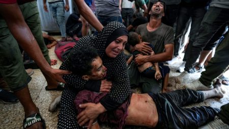 دير البلا ، مدينة غزة (AP)-عندما بدأت القنابل الإسرائيلية في السقوط ، هرب محمد النجار وزوجته وستة أطفال من منزلهم في جنوب غزة في جوف الليل ، متشترين في إرهاب إلى جانب مئات من آخرين من حيهم.