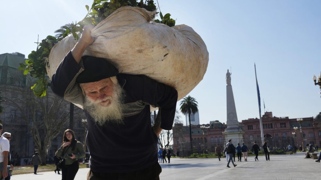 منتج يحمل كيسًا من عشبة الماتيه في بوينس آيرس للاحتجاج على خطة الرئيس خافيير ميلي لخفض ضوابط الأسعار والدعم في أسواق مختلفة. العاصفة الاستوائية إرنستو تضرب بورتوريكو. تحطمت طائرة في فينيدو بالبرازيل. الأمير هاري وميغان يزوران كولومبيا.