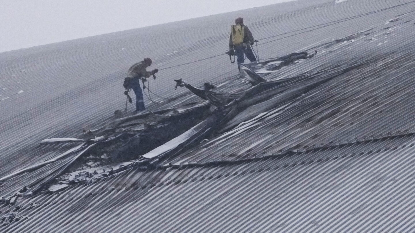 خدمة الطوارئ الأوكرانية ، تُرى قشرة الحماية التالفة على المفاعل الرابع لمحطة توليد الطاقة النووية تشيرنوبيل من الداخل بعد إضراب طائرة بدون طيار ، الجمعة ، 14 فبراير ، 2025 (خدمة الطوارئ الأوكرانية عبر AP)