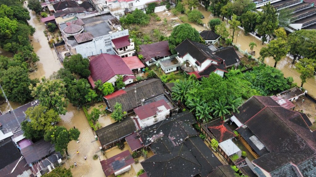 The scenes emerging from the affected areas are heartbreaking. Aerial footage reveals vast stretches of emerald forests and terraced hillsides ripped apart, with rivers of mud cascading into valleys below. In North Sumatra’s capital, Medan, and Deli Serdang, entire neighborhoods are submerged, with only rooftops visible above the brown floodwaters. Roads have been transformed into canals, littered with stranded vehicles and fallen trees.
