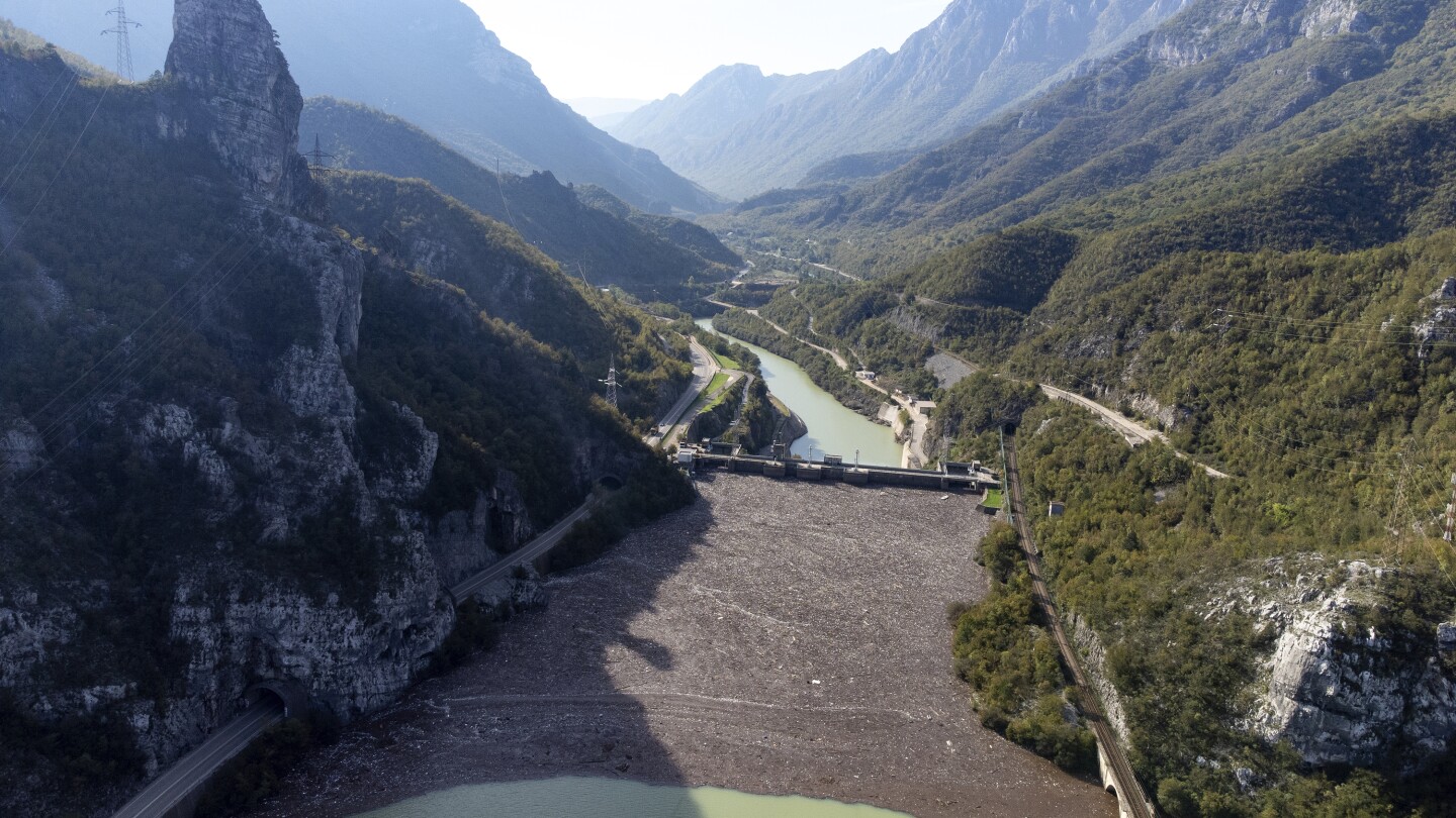 تراكمت جميع أنواع الحطام، من قطع الخشب إلى الأجهزة المنزلية، بجوار سد الطاقة الكهرومائية على نهر النيريتفا، مما أدى إلى إنشاء جزيرة افتراضية من النفايات على النهر وتوضيح الدمار الذي سببته الفيضانات.