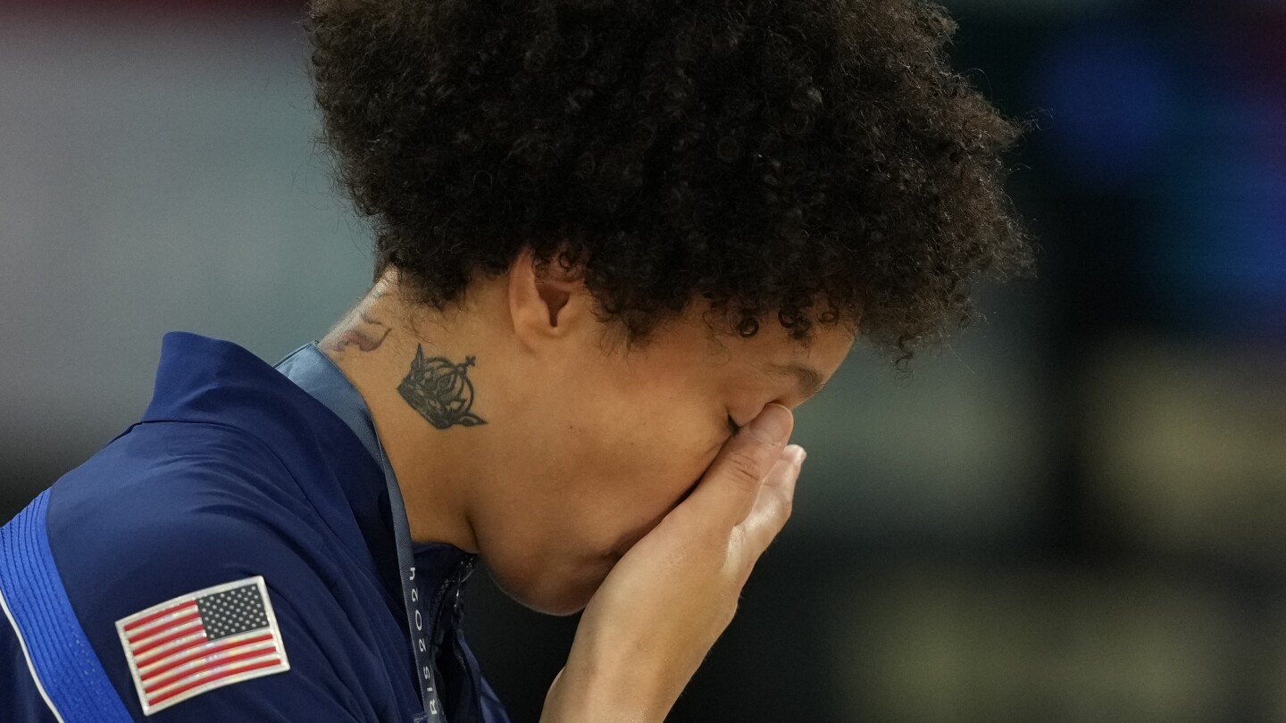 باريس (أ ب) – تقف على منصة الميداليات وهي تحمل ميداليتها الذهبية الثالثة حول عنقها، بريتني جرينر نظرت إلى العلم الأمريكي والدموع تنهمر على خديها أثناء النشيد الوطني.