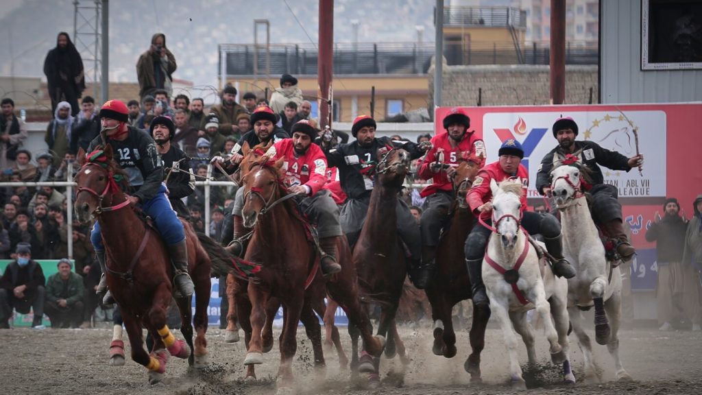 البوزكاشي (Buzkashi)، والتي تعني حرفيًا “إمساك الماعز” باللغة الفارسية، هي الرياضة الوطنية في أفغانستان. تاريخيًا، كانت تُستخدم كتدريب عسكري للفرسان، حيث تهدف إلى تطوير مهاراتهم في الفروسية والقتال. تتضمن اللعبة فريقين من الفرسان يتنافسون على الاستيلاء على ذبيحة ماعز (أو نسخة صناعية منها في الوقت الحاضر، حفاظًا على الحيوانات) وحملها عبر مرمى محدد.