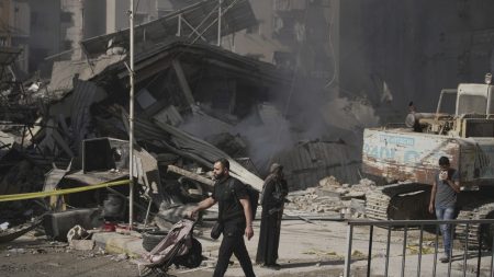 يقدم الفلسطينيون صلوات العيد آدها بجانب أطلال مسجد دمرته القصف الإسرائيلي ، في دير البلا ، غزة يوم الجمعة ، 6 يونيو 2025. (AP Photo/Abdel Kareem Hana)