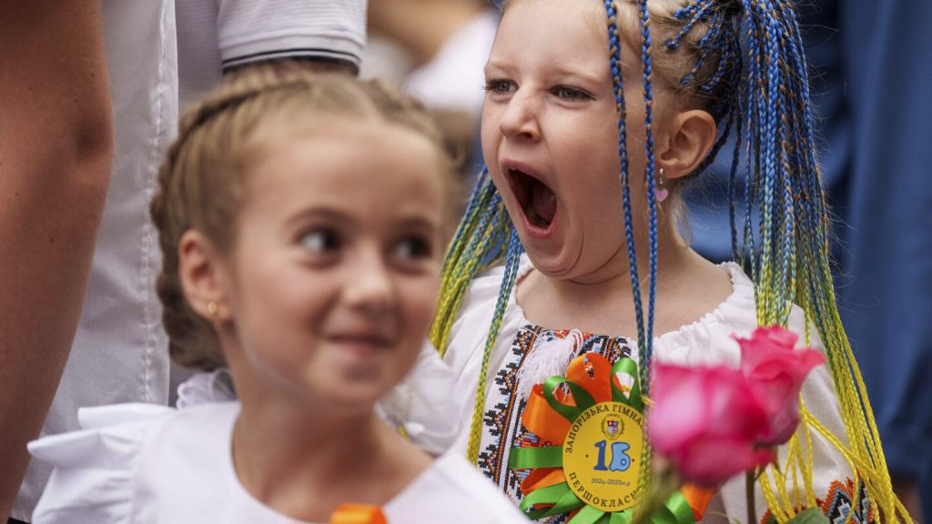 زابوريزهزيا، أوكرانيا (أ ب) – بعد ساعات فقط من انطلاق صفارة الإنذار من غارة جوية عند الفجر في المدينة، احتفل تلاميذ المدارس في زابوريزهزيا باليوم الأول التقليدي من الدراسة يوم الأحد.
