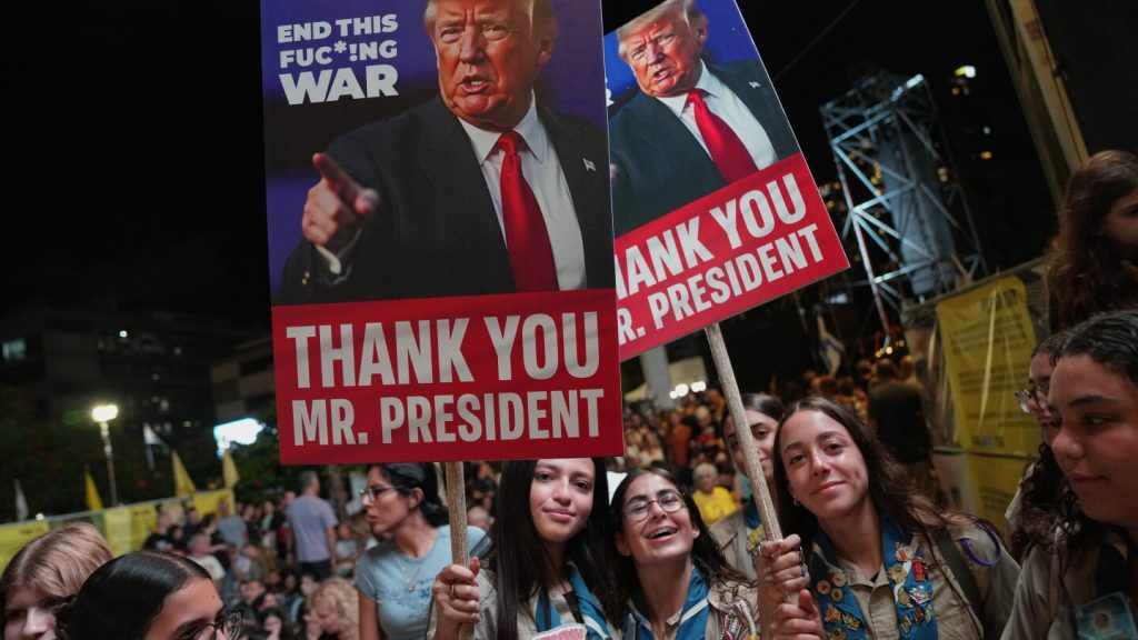 أشاد الإسرائيليون بالرئيس الأمريكي دونالد ترامب، وأطلق البعض صيحات الاستهجان على رئيس الوزراء بنيامين نتنياهو، بينما ألقى المبعوث الأمريكي ستيف ويتكوف وصهر ترامب جاريد كوشنر كلمة في تجمع أسبوعي في تل أبيب يأمل الكثيرون أن يكون الأخير.