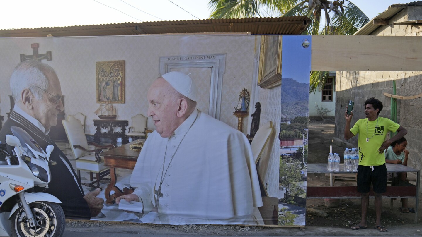 كانت الجدران لا تزال قيد الطلاء الجديد، كما امتلأت الشوارع باللافتات واللوحات الإعلانية في العاصمة الساحلية ديلي، للترحيب بالبابا، الذي زار في وقت سابق إندونيسيا وبابوا غينيا الجديدة.