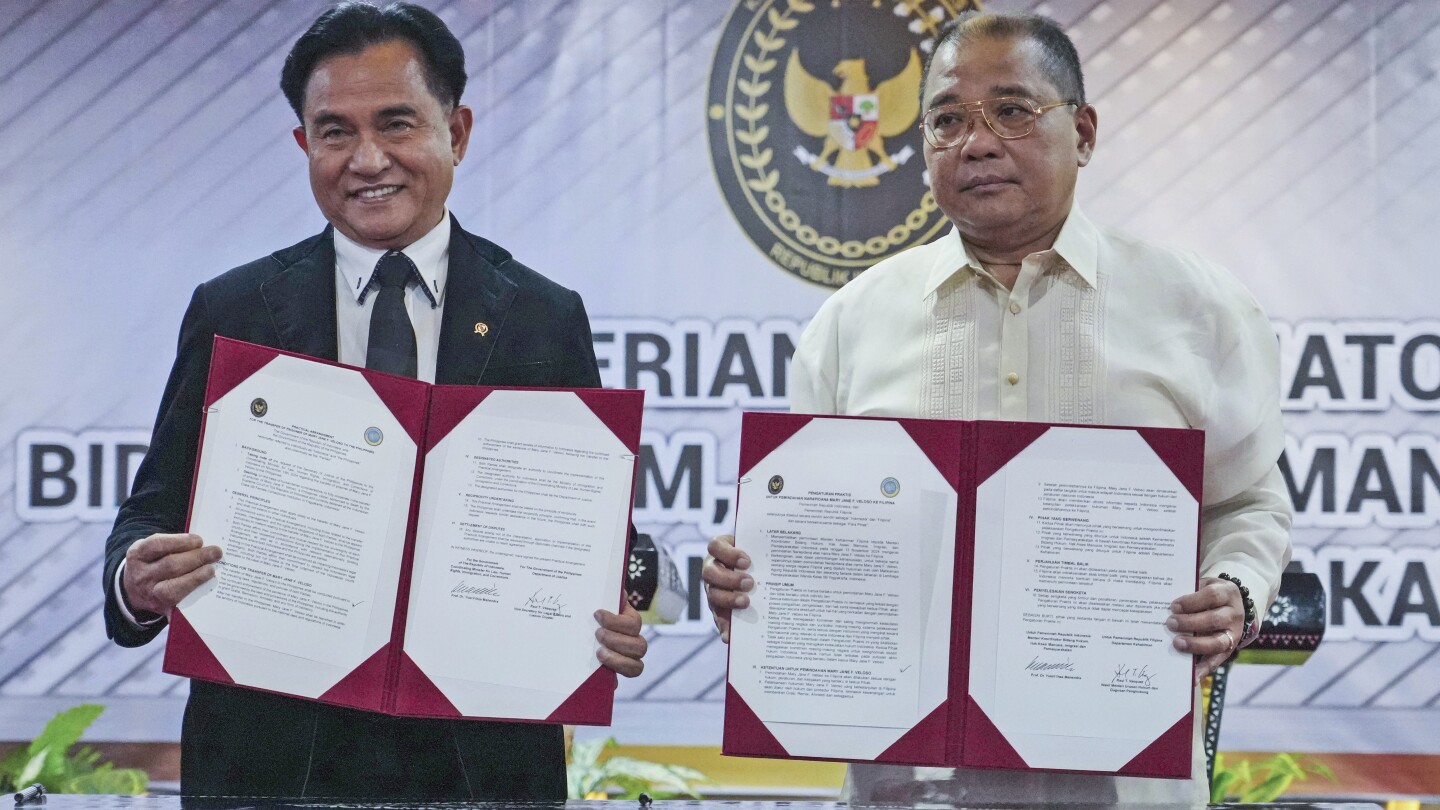 جاكرتا ، إندونيسيا (أ ف ب) – وقعت إندونيسيا والفلبين اتفاقا يوم الجمعة لإعادة الفلبيني المحكوم عليه بالإعدام في قضايا مخدرات والذي كاد أن يُعدم رميا بالرصاص في عام 2015 ، حيث تسعى الإدارة الجديدة للرئيس برابو سوبيانتو إلى تعزيز العلاقات الدبلوماسية مع الدول المجاورة.