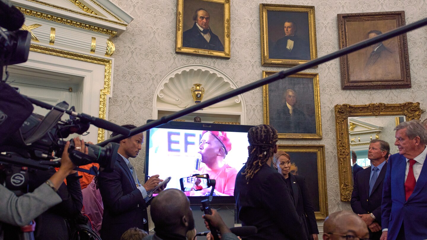 استولى بعض حلفاء ترامب على يوليوس ماليما إن مقاتلي الحرية الاقتصادية في اليسار اليساري يجادلون بأن جنوب إفريقيا يشاركون في الإبادة الجماعية ضد المزارعين البيض ، وهو ما بدا أنه يزحف منافسًا سياسيًا في ماليما ، رامافوسا ، خلال زيارته المكتبية البيضاوية. أكد رامافوسا مرارًا وتكرارًا على أن EFF هو “حزب أقلية صغيرة”.