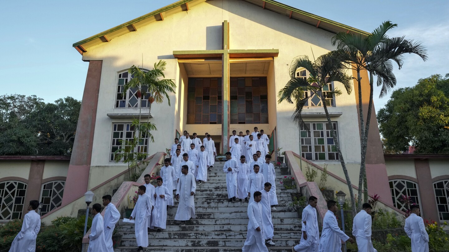 طلاب اللاهوت يحضرون القداس الصباحي في معهد ريتابريت الرئيسي في ماوميري، مقاطعة نوسا تينجارا الشرقية، إندونيسيا، الجمعة 23 أغسطس 2024. (AP Photo/Tatan Syuflana)