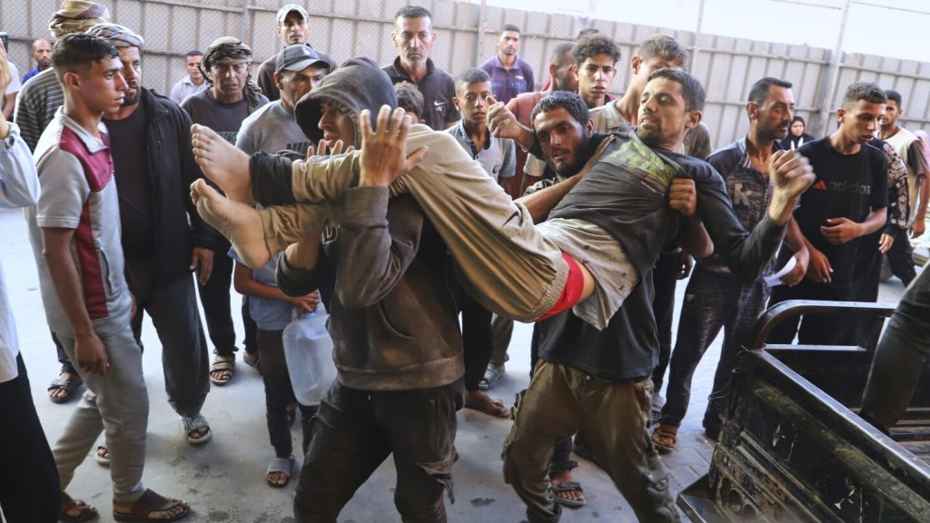 دير البلا ، غزة قطاع (AP)- فتحت القوات الإسرائيلية النار يوم السبت باتجاه حشود من الفلسطينيين الذين يبحثون عن طعام من مراكز التوزيع التي تديرها مجموعة مدعومة من الولايات المتحدة والإسرائيلية في جنوب غزةقتل ما لا يقل عن 32 شخصًا ، وفقًا للشهود ومسؤولي المستشفى.